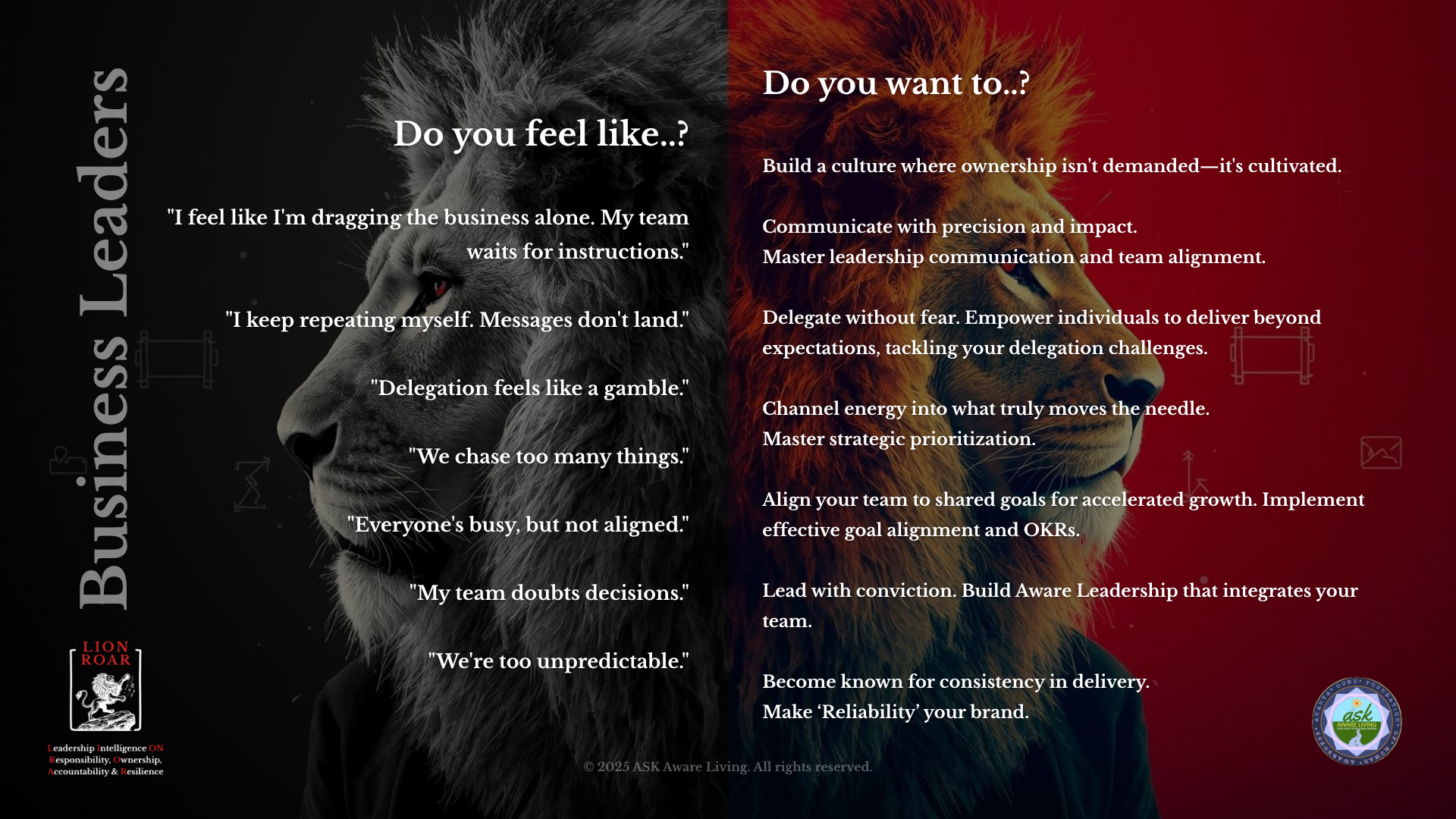 "The clarity is astonishing, and our quarterly results are hitting targets consistently. We've never been more aligned. LION ROAR was the game-changer."