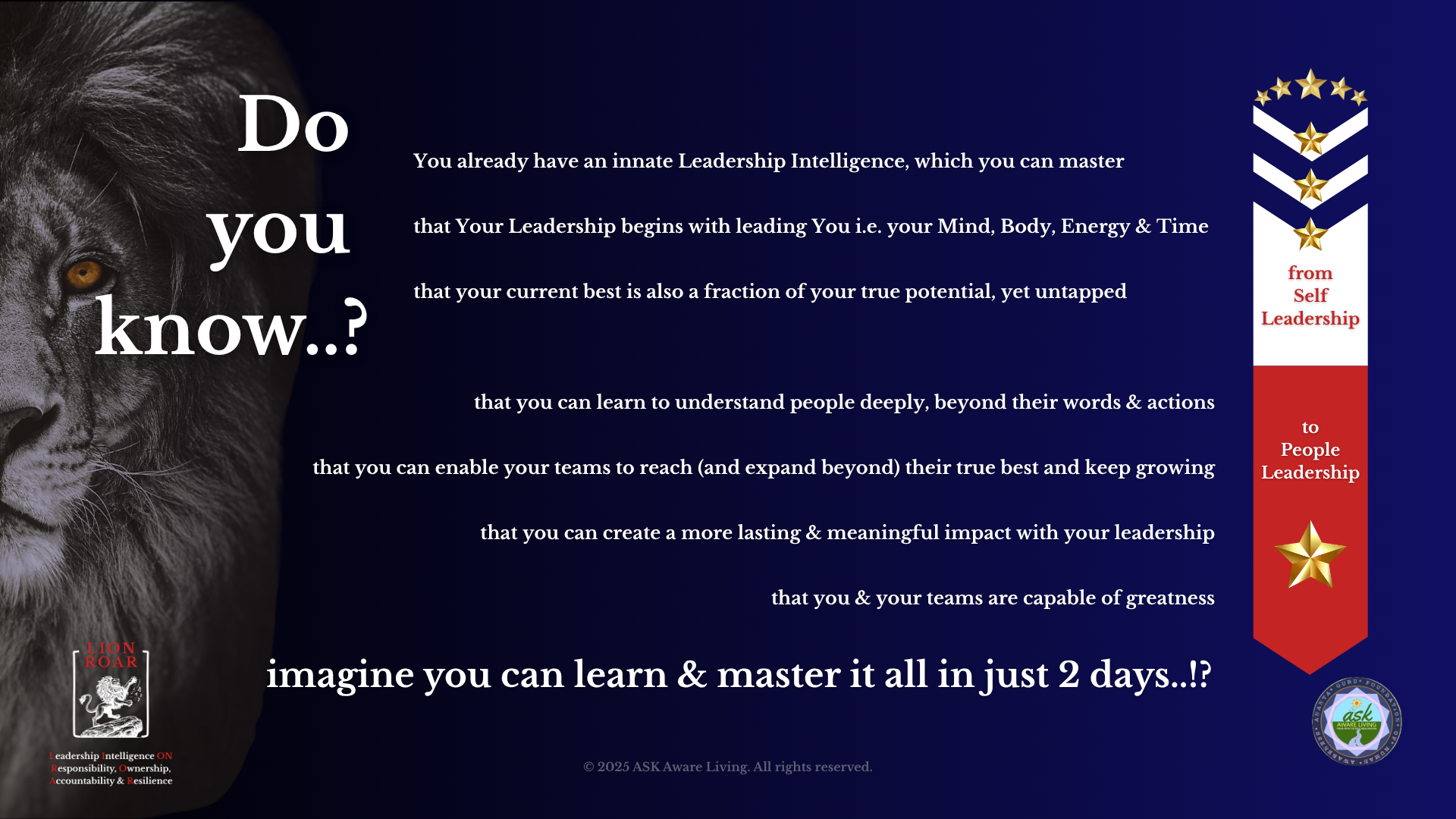 An Elixir for Leaders, LION ROAR is the ultimate solution for all the Complex Human Leadership Challenges & the launch pad for all the extraordinary achievements of individuals & teams.