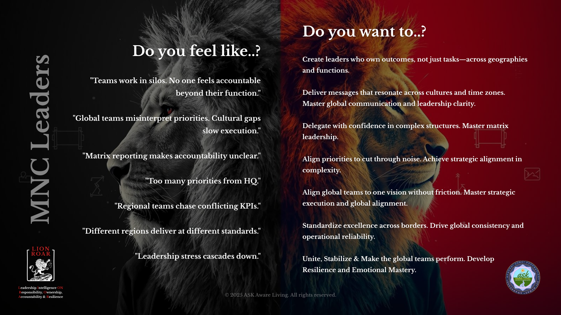 "LION ROAR wasn't a cost; it was an investment in our company's DNA. Our retention rates improved, our output quality stabilized, and our leadership pipeline is now full."